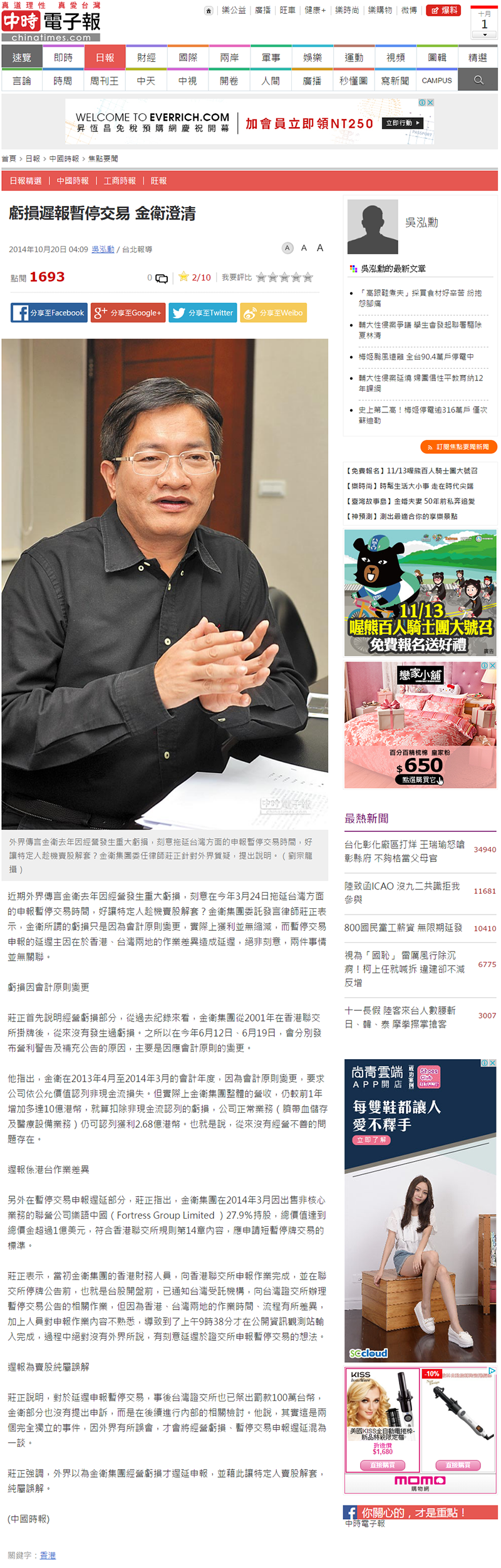 2014.10.20 虧損遲報暫停交易 金衛澄清  回上一頁