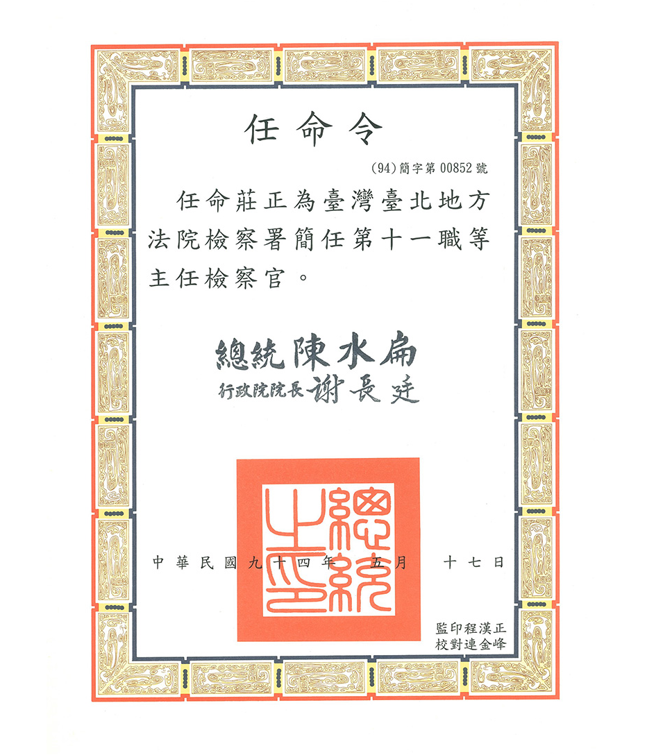 2005.05.17|台北地方法院檢察署任命令-主任檢察官 回上一頁