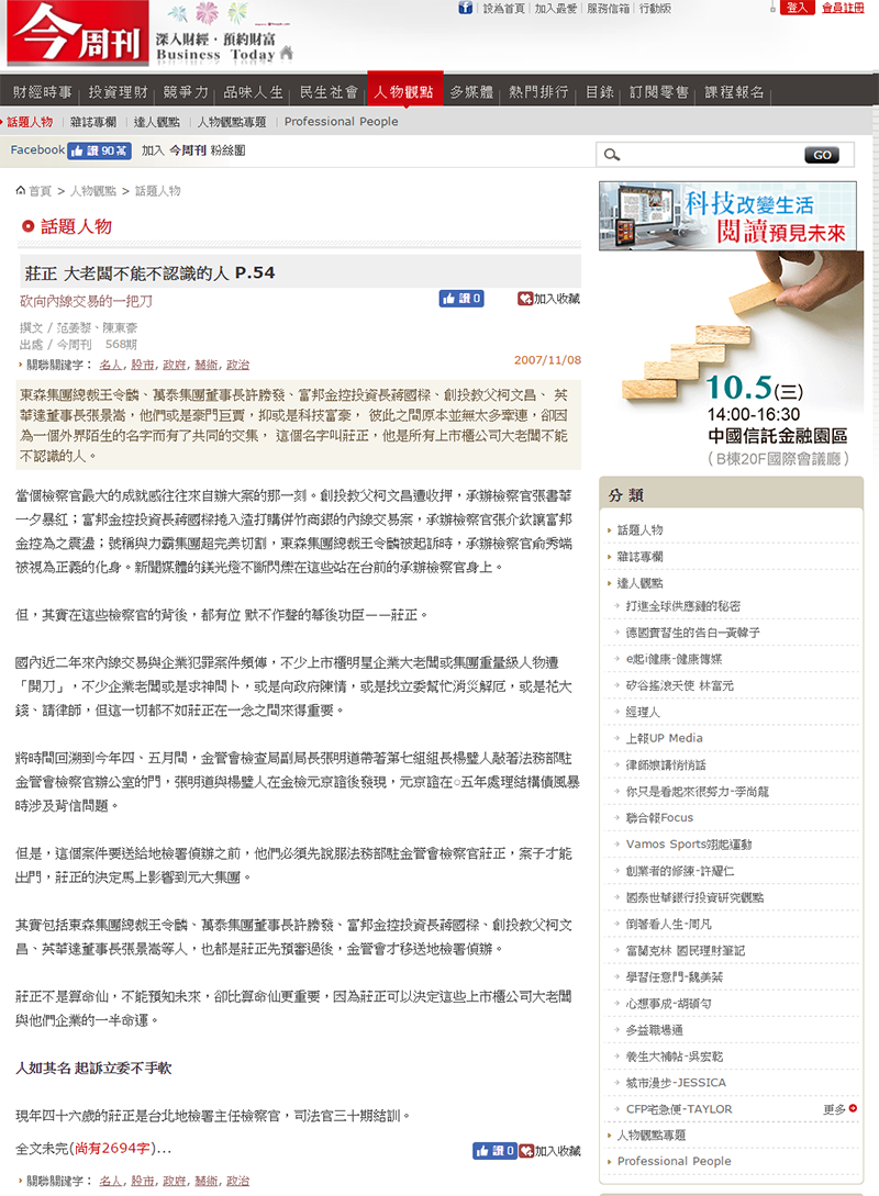 2007.11.08 今周刊-砍向內線交易的一把刀 莊正 大老闆不能不認識的人